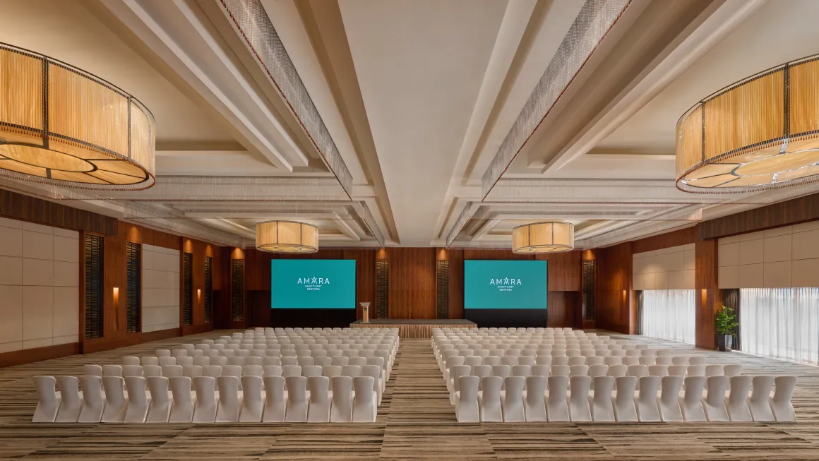 榕树厅 榕树厅(Ficus Room)将典雅的室内装饰与多功能性相结合,为小型会议或活动提供了一个明亮、适应性强的完美空间。该厅采用时尚现代的装饰风格和自然色调,可容纳最多 60 人的中型圆桌会议或 140 人的站立会议,为富有成效的讨论或亲密聚会提供了舒适的环境。 了解更多
